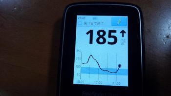 ・朝食前血糖値は少し高く、185mg/dlでした。