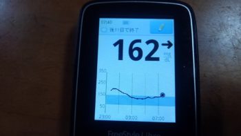 ・朝食前血糖値は少し高く、162mg/dlでした。