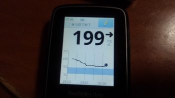 ・朝食前血糖値は少し高く、199mg/dlでした。