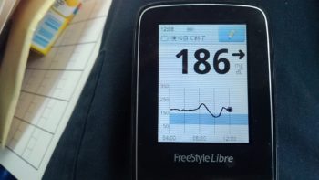 ・昼食前血糖値は少し高く、186mg/dlでした。