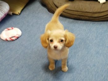 薄い茶色の毛の女の子でした。ブルブル震えていましたが、家族みんなの手の指を舐めてくれて、おとなしく可愛いので、一目惚れしてしまいました。