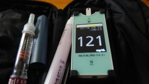 ・朝食が遅めだったので昼食前の血糖値は少し高かったです。