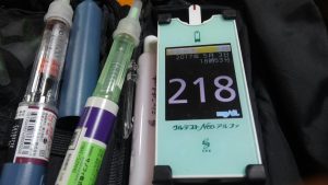 本日の血糖値と食事に合わせたインスリン注射量です。
