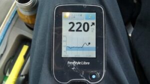 ・昼食前血糖値は高く、220mg/dlでした。(低血糖予防のため、10時ごろに缶コーヒーを1本飲みました。)