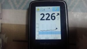 ・夕朝食前血糖値は高く、234mg/dlでした。(高血糖が下がり切りませんでした。)