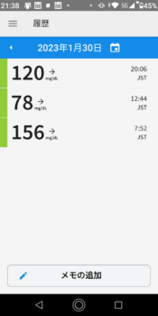 | 2023-01-30 | 血糖値 | 食事 | 超即効性インスリン 注射量 | 持続性インスリン 注射量 |