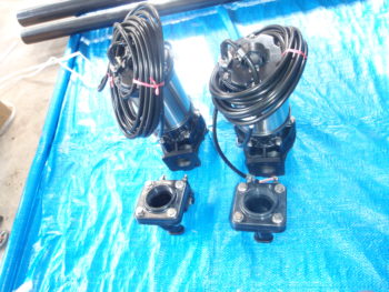 いよいよ水中ポンプの取替えでしたが、旧パーツが、30~40年くらい以前のものでしたので、1台で100Kgを超える凄く大型のものでした。