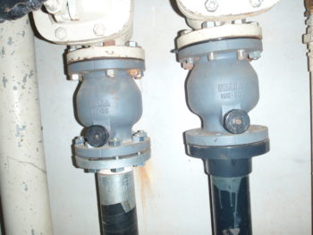 汚水槽のチェックバルブ(逆止弁)も故障して揚水が悪かったので、これも合計2機取り替えました。