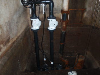 当ビルの総務部長から、雑排水ポンプが1台故障しているのと、ポンプの排水の揚水管から、漏水しているとのことで、取替え工事の依頼を受けました。