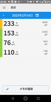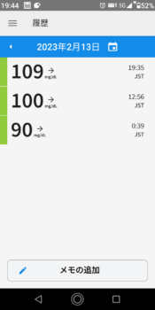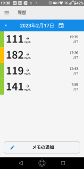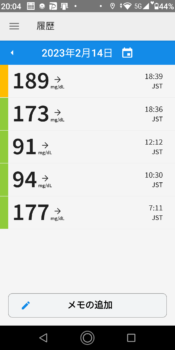この携帯のアブリより実際の測定値のほうが若干ですが低いので、下記の数字より、まだよい値と言えます。