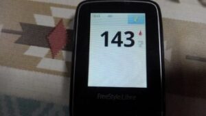 ・夕朝食前血糖値はほぼ良好で、143mg/dlでした。