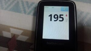 ・夕朝食前血糖値は高く、mg/dlでした。(昼食時に低血糖になるました。食中にインスリン注射しようと思ったのですが、打ち忘れてしまいました。)
