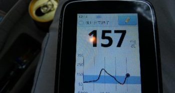 ・昼食前血糖値は少し高く、157mg/dlでした。