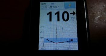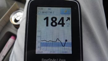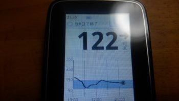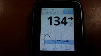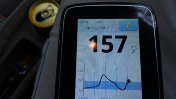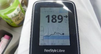 朝食抜きなので、動き過ぎると低血糖になります。前日の夜はインスリン量を控えて、少し高血糖気味にしておきました。