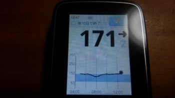 ・夕食前血糖値は少し高く、171mg/dlでした。