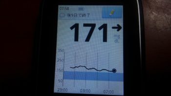 ・朝食前血糖値は少し高く、171mg/dlでした。
