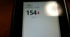 ・夕食前血糖値は少し高く、154mg/dlでした。