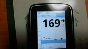 ・朝食前血糖値は少し高く、169mg/dlでした。