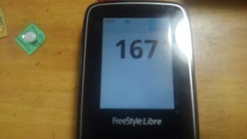 ・夕食前血糖値は少し高く、167mg/dlでした。
