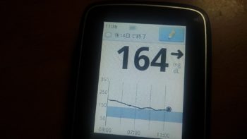・昼食前血糖値は少し高く、164mg/dlでした。