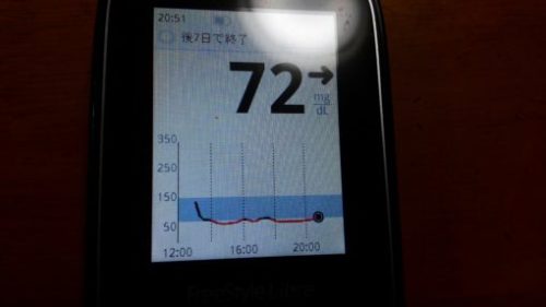 ・夕食前血糖値は低く、72mg/dlでした。