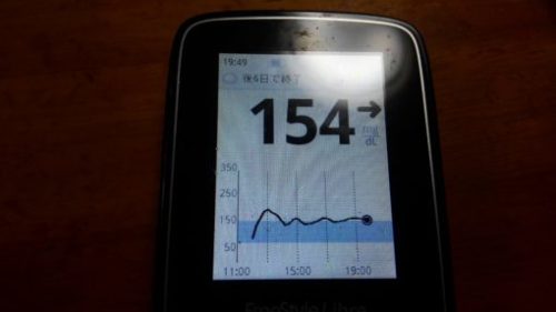 ・夕食前血糖値は少し高く、154mg/dlでした。