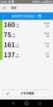 | 2022-12-26 | 血糖値 | 食事 | 超即効性インスリン 注射量 | 持続性インスリン 注射量 |