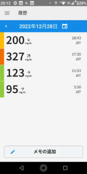 | 2022-12-28 | 血糖値 | 食事 | 超即効性インスリン 注射量 | 持続性インスリン 注射量 |