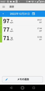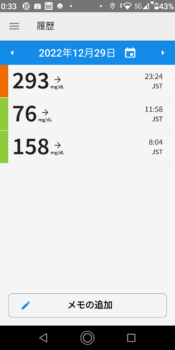 | 2022-12-29 | 血糖値 | 食事 | 超即効性インスリン 注射量 | 持続性インスリン 注射量 |