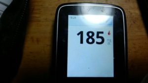 ・夕食前血糖値は少し高く、185mg/dlでした。
