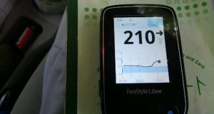 そんなときに「ブドウ糖」を捕食したものですから、起床時の血糖値は、300mg/dl弱まで上がっていました。低血糖になると血糖値が不安定になるのはこのことが理由です。