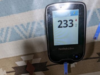 ・夕食前血糖値高く、233mg/dlでした。