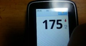・朝食前血糖値は少し高く、175mg/dlでした。