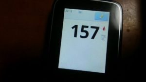 ・夕食前血糖値は少し高く、157mg/dlでした。