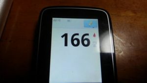 ・夕食前血糖値は少し高く、166mg/dlでした。