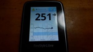 ・朝食前血糖値は251高く、251mg/dlでした。昨夕にインスリン注射を打ち忘れました。