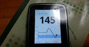 ・昼食前血糖値はすこし高く、145mg/dlでした。