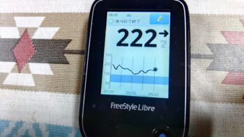 ・朝食前血糖値は高く、222mg/dlでした(夕食が遅く、食事後にすぐ就寝すると血糖値が下がりません)。