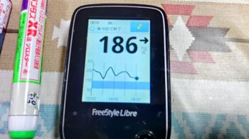 ・夕食前血糖値は少し高く、186mg/dlでした。