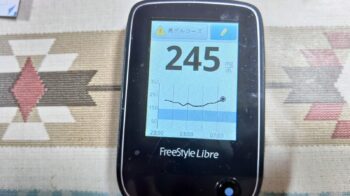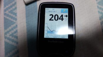 ・朝食前血糖値は高く、245mg/dlでした(昨夕の豚の生姜焼きもカロリーが高く、あと4~5単位ほどのインスリン注射量が必要なのが分かります)。