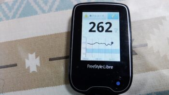 ・朝食前血糖値は高く、262mg/dlでした(昨夕の焼肉丼カロリーが高く、あと4~5単位ほどのインスリン注射量が必要なのが分かります)。