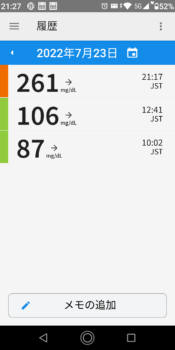 | 2022-07-23 | 血糖値 | 食事 | 超即効性インスリン 注射量 | 持続性インスリン 注射量 |