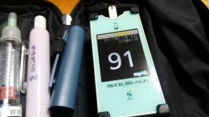 ・今朝の朝食前血糖値は良好でで91mg/dlでした。昨夕食と同じものを食べて同じインスリン注射量なので分かりやすかったです。