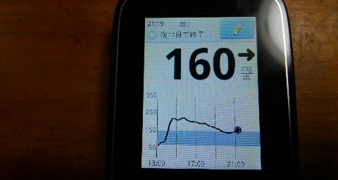・夕食前血糖値は少し高く、160mg/dlでした。