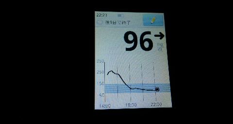 ・夕食前血糖値は低く、96mg/dlでした。