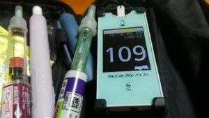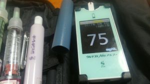 ・今日は午前中、現場作業でした。昼食前血糖値は低血糖手前でした。