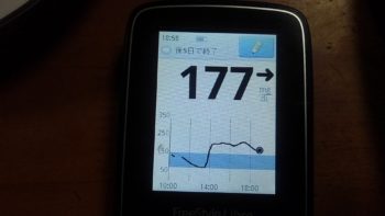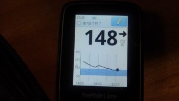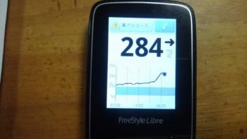 ・昼食前血糖値は、朝食時にインスリン注射をし忘れたので高く、284mg/dlでした。