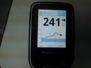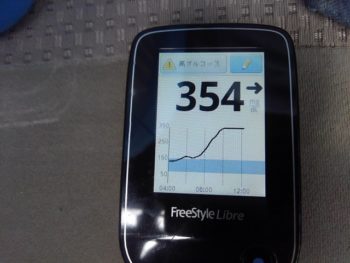 ・昼食前血糖値は高く、354mg/dlでした。朝食時にインスリン注射を打ち忘れました。