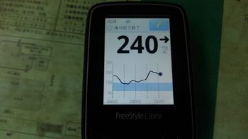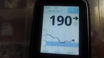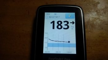 ・昼食前血糖値は朝食時にインスリン注射をし忘れたので高く、357mg/dlでした。