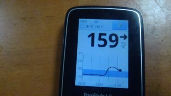 ・夕食前血糖値は少し高く、159mg/dlでした。